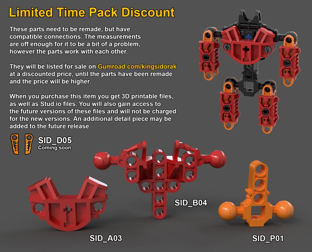 When you purchase this item you get 3D printable files, as well as Stud.io files. You will also gain access to the future versions of these files and will not be charged for the new versions. An additional detail piece may be added to the future release.